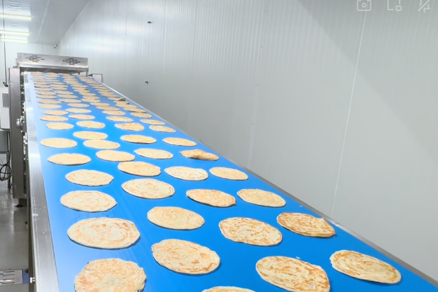 Hot pressing machine finished product After the rolled-out dough is formed, it is precisely heated by the press mechanism to achieve a Half cooked paratha.