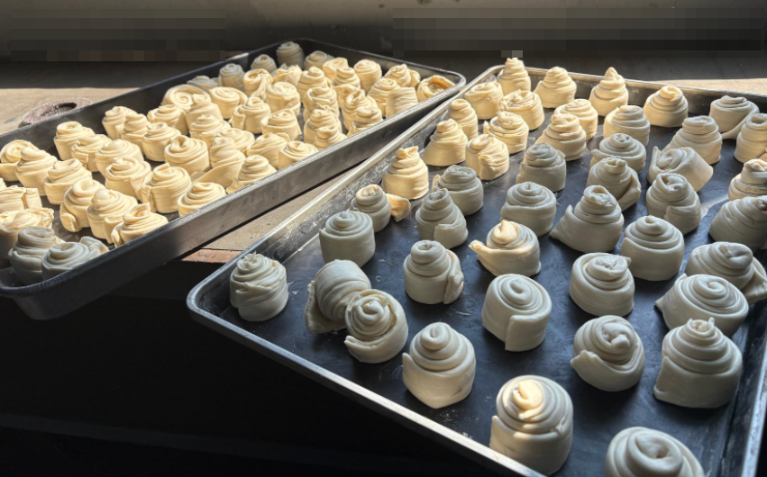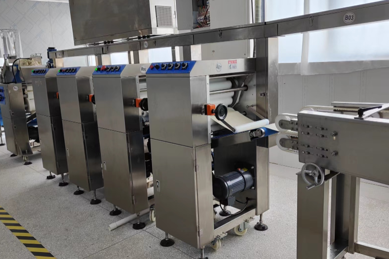 Now dough lines are ready to be rolled here,after dough si rolled it can now go into CPE-788B for filming and pressing.