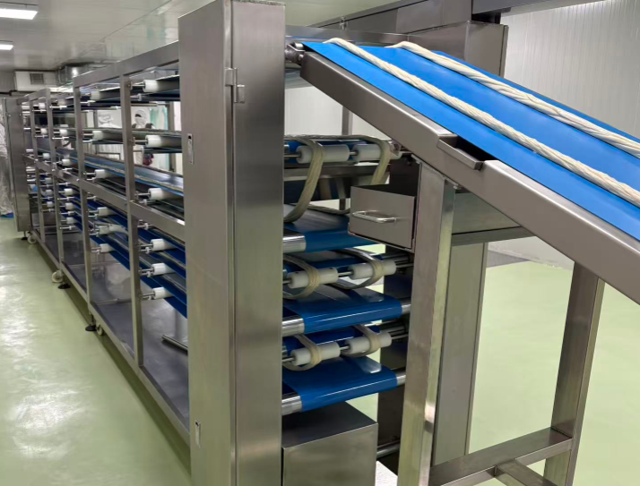 ■ Here dough ball is Relaxed conveyed into many level of conveyor.